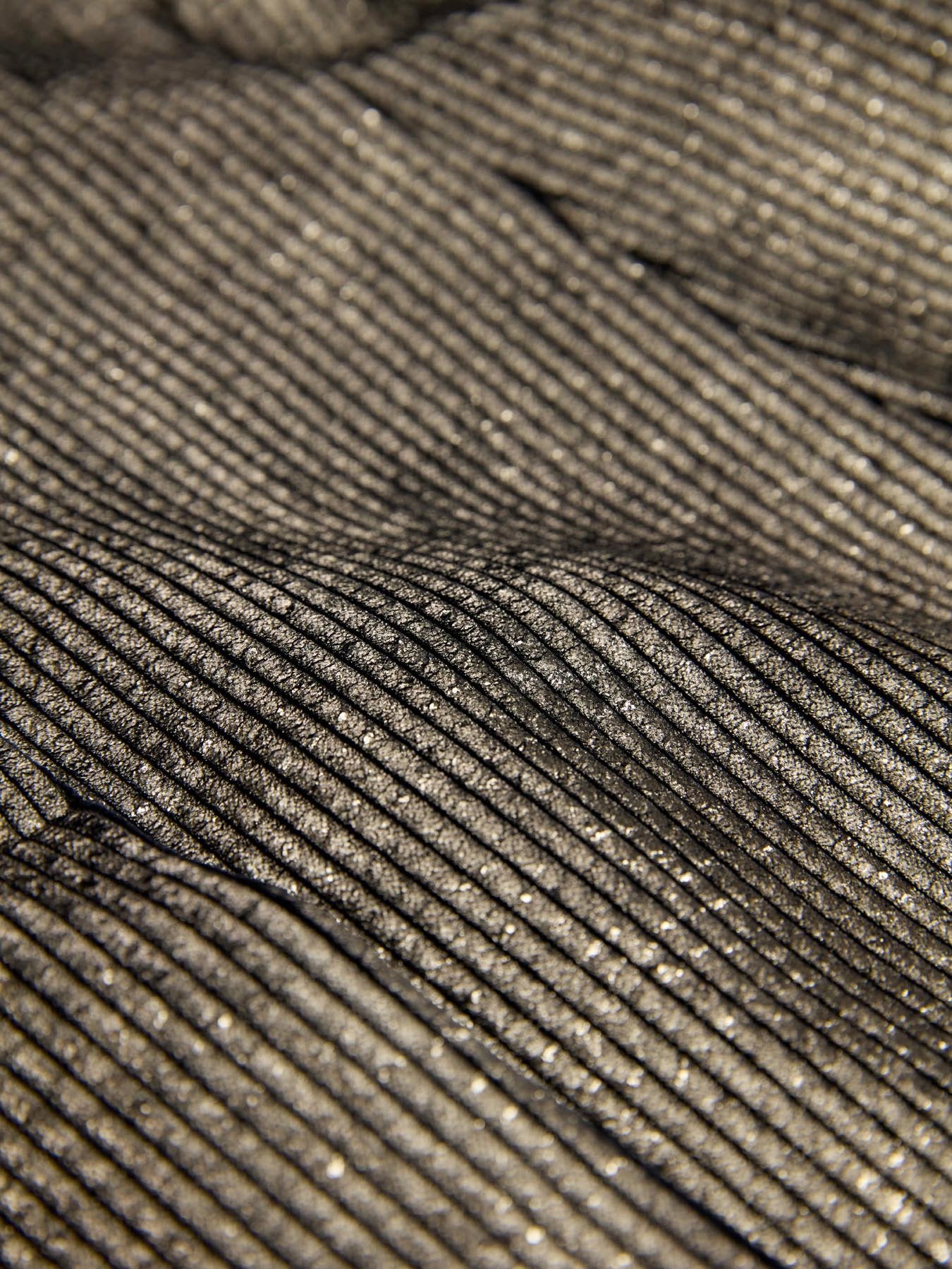 Blazer dal gusto maschile dopio petto leggermente sfiancato, spalloni inseriti, spacco centrale dietro in velluto a coste spalmato oro. Vestibilità comoda. Stupendo abbinato al suo pantalone.