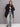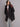 Piumino nero puffy con interno a contrasto. Zip davanti, cappuccio con bottoni a pressione e coulisse. Vestibilità oversize, lunghezza al ginocchio. La modella è alta 1.69 ed indossa taglia 42.
