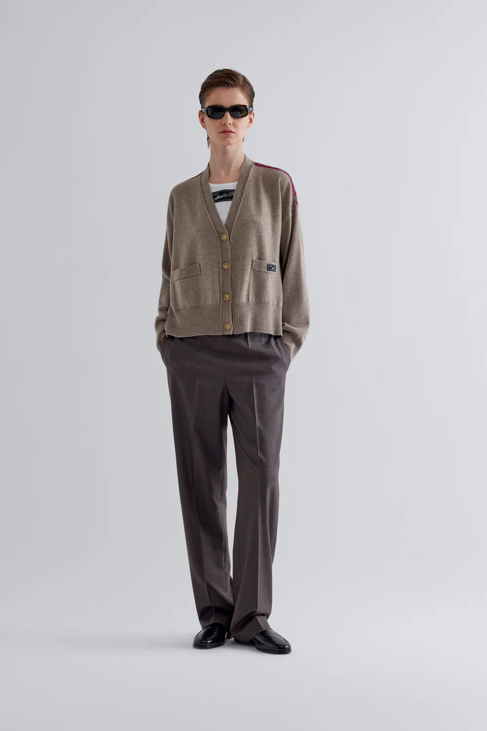 Cardigan in cachemire over con bottoni centrali e scollo a V. Particolarità nel retro per la fantasia in stile cravatta, dal gusto maschile. Vestbilità comoda.