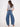 Jeans in denim scuro effetto vissuto vita alta gamba a ferro di cavallo. La modella è alta 1.69 ed indossa taglia 26.