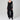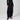 Jeans cinque tasche in tela denim nera a ferro di cavallo con finale sfrangiato. Vita regolare, vestibilità comoda.