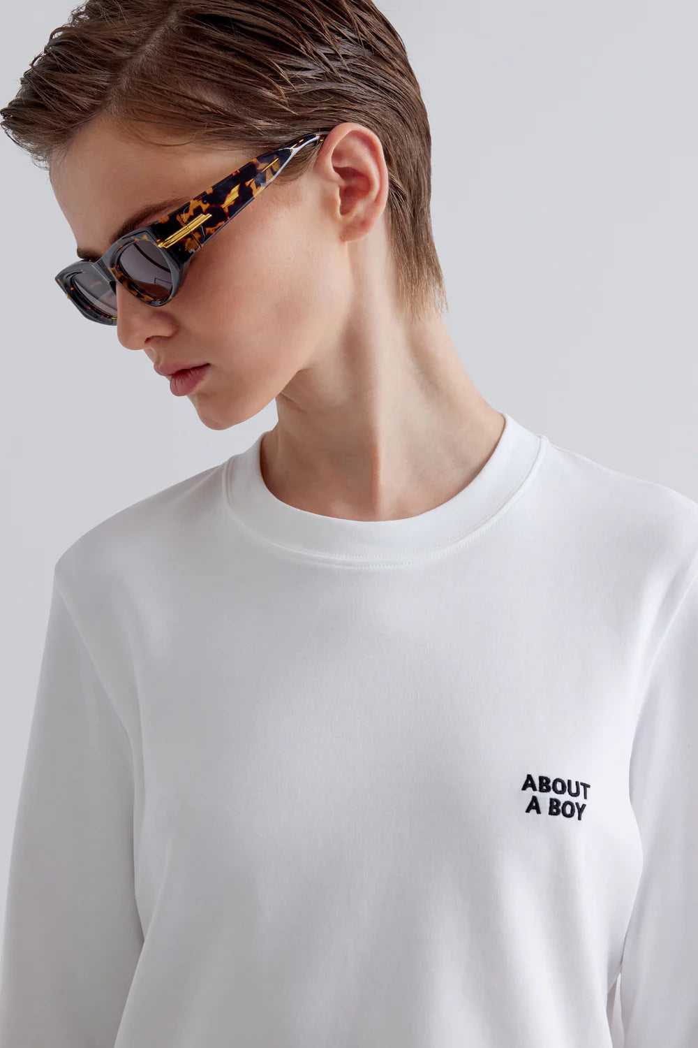 T-shirt girocollo in morbido cotone a maniche lunghe con stampa ABOUT A BOY laterale. Vestibilità comoda.