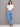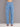 Jeans in tela denim blu con tagli laterali a metà coscia a vivo bordati da strass. Gamba a banana, vita alta, vestibilità comoda. La modella è alta 1.69 ed indossa taglia 26.