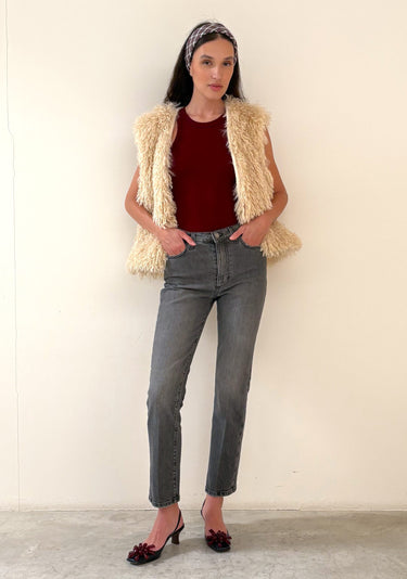 Gilet ecomongolia panna lunghezza sui fianchi, super in tendenza.