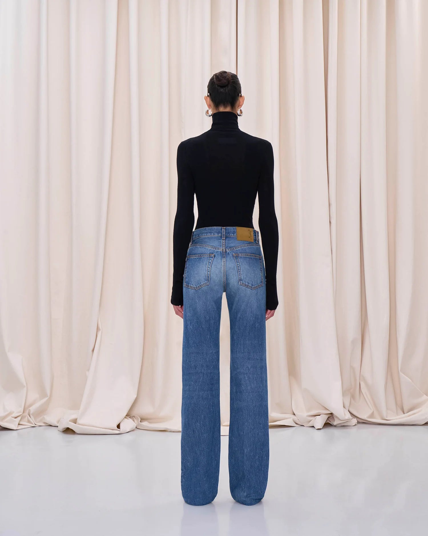 Jeans in tela denim scura modello cinque tasche. Gamba dritta leggermente appoggiata, vita regolare, abbastanza lungo. Bellissimo da indossare con un texano.
