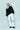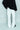 Pantalone in denim nero gamba a palazzo. Vita alta con dettaglio a rete strass sul gionocchio. Vestibilità oversize.