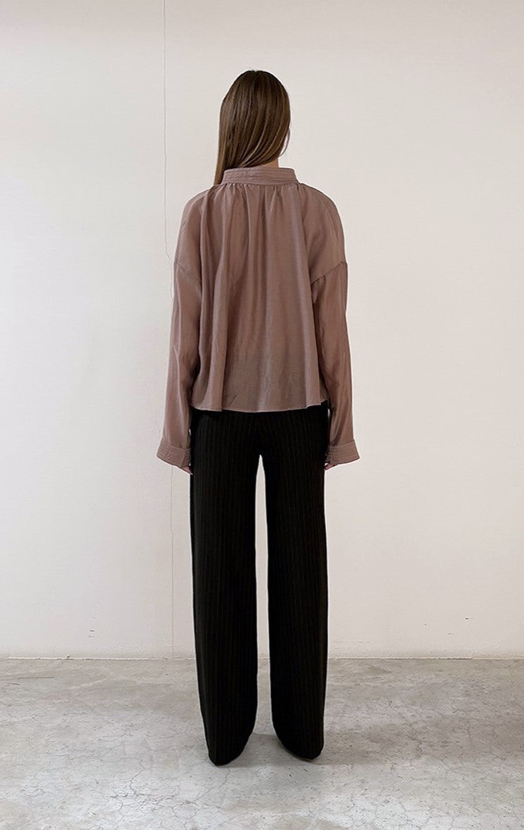 Blusa in lyocell con profondo scollo a V e bordatura. Vestibilità morbida, lunghezza sotto la vita (dosponibile anche variante NERO).