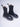 Biker nero in pelle a mezza gamba con elastici laterali e para in gomma grigia bombata.
