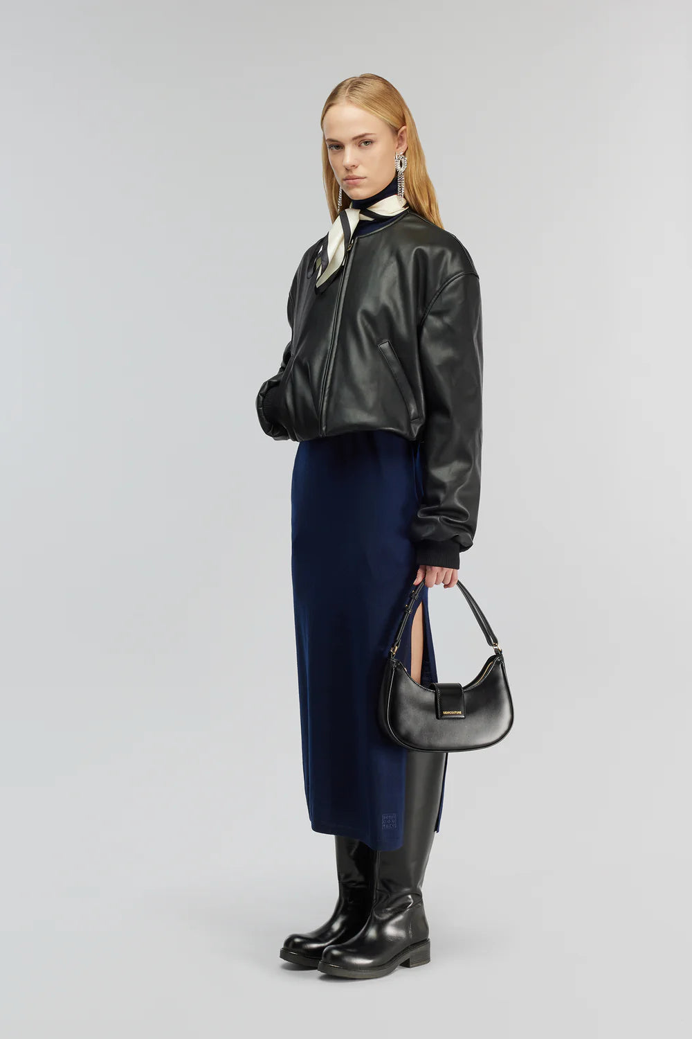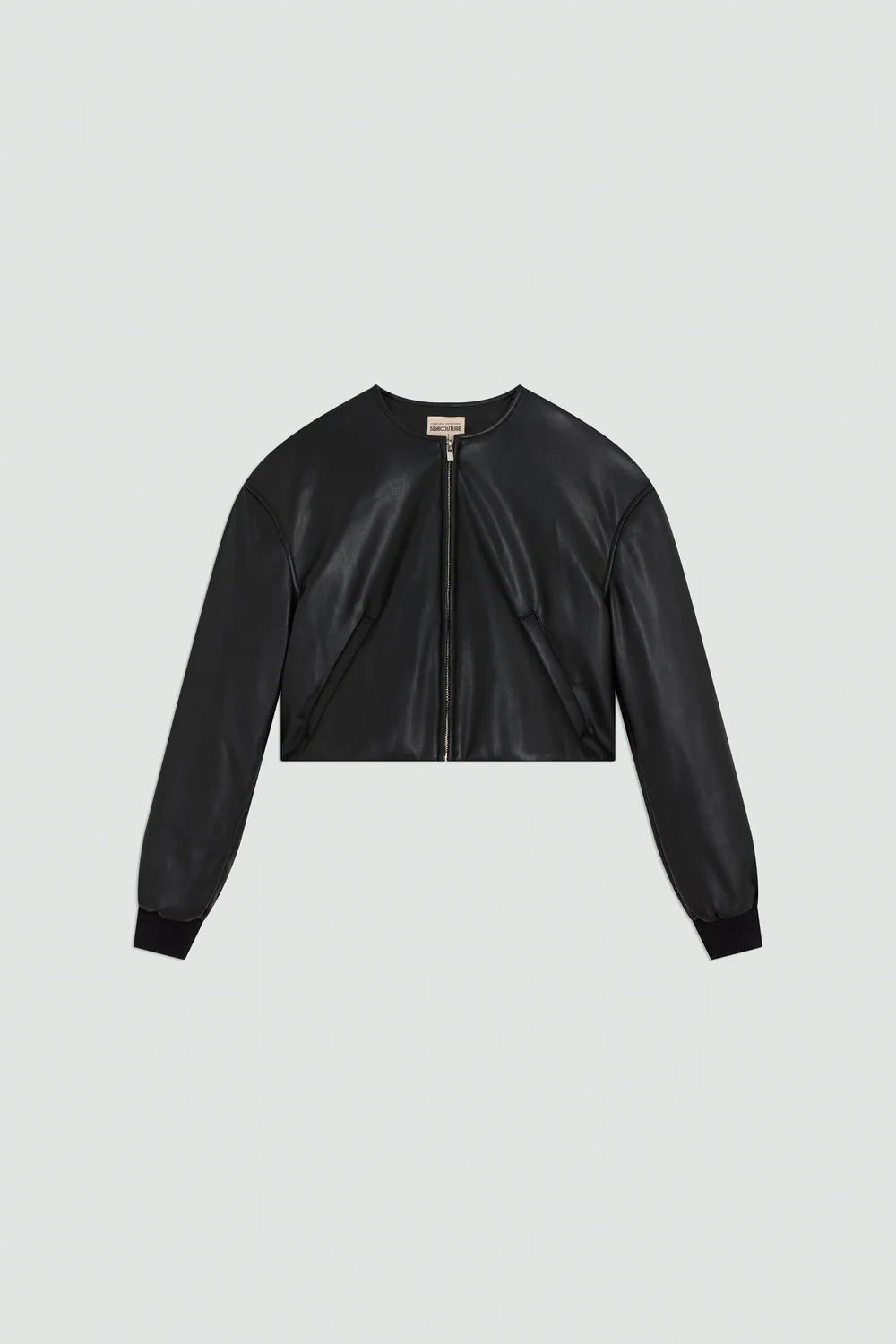 Bomber in eco-pelle, zip frontale con collo a camicia. Lunghezza in vita, due tasche a filetto laterali. Vestibilità comoda.