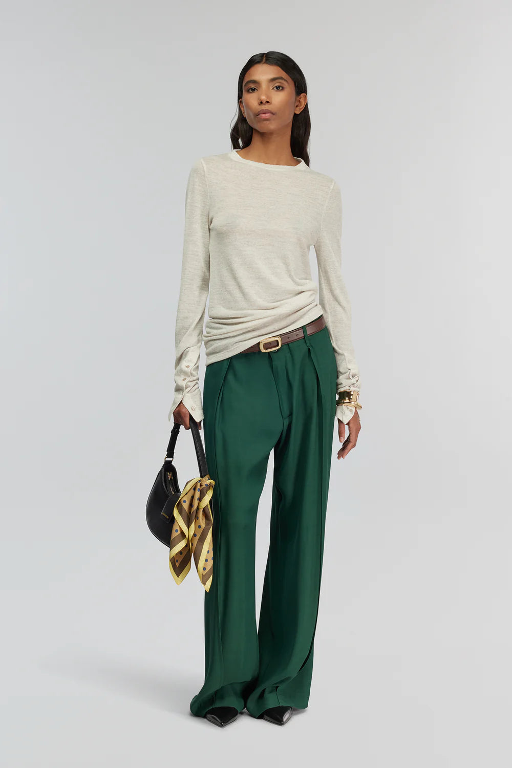Maglia basic girocollo in lana super sottile grigio chiaro. Vestibilità regolare, manica lunga. (disponibile anche variante colore NERO)