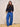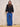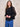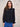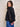 Blusa con motivo rouches e chiusura con nastrino in velluto al collo. Stampa all over pois floccata blu scuro. Svasata sulla parte finale, lunghezza ai fianchi. La modella è alta 1.69 ed indossa taglia 36.