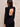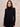 T-shirt a collo alto in lurex nero con abbottonatura e maxi oblò sulla schiena. Vestibilità aderente, manica a guanto e spalloni inseriti.