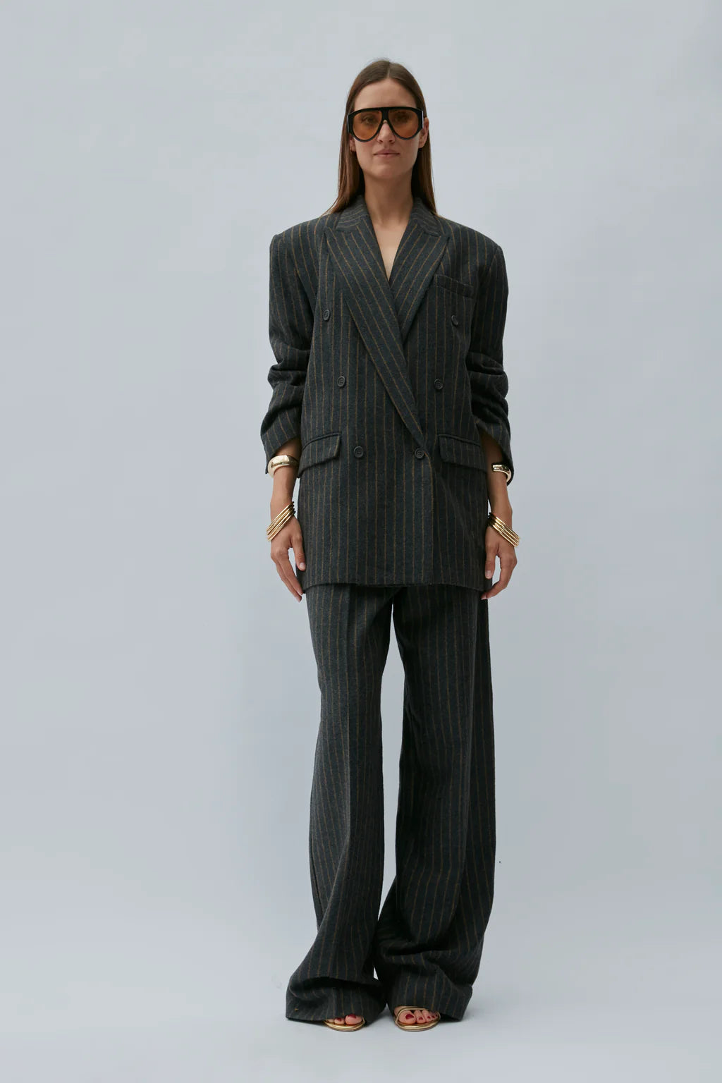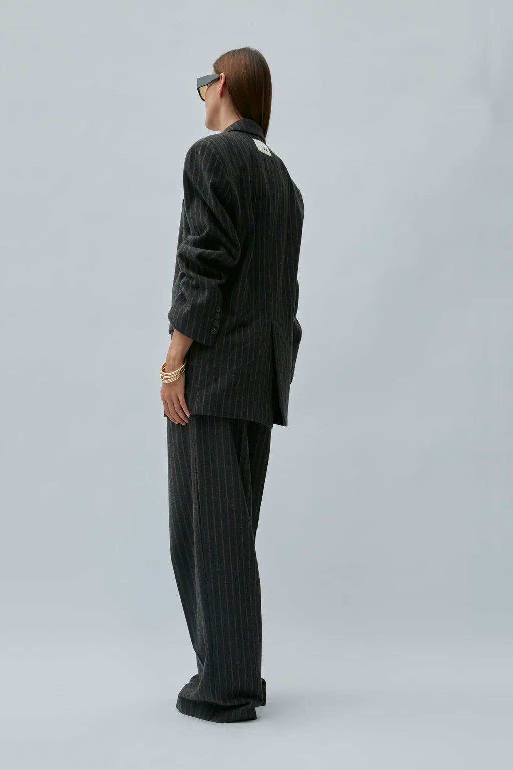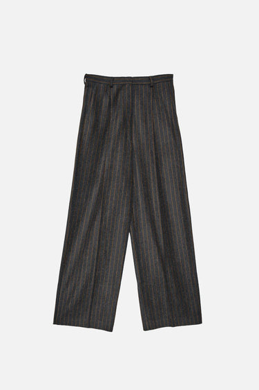 Pantalone in panno di lana dal taglio maschile oversize. Vestibilità comoda, pinces in vita.