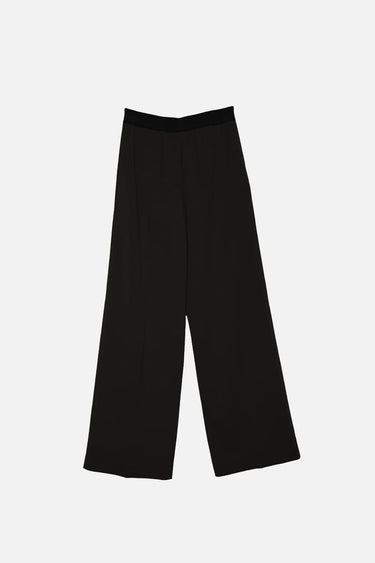 Pantalone con elastico in vita in 100% lana dal taglio maschile oversize, gamba dritta. Vestibilità comoda.