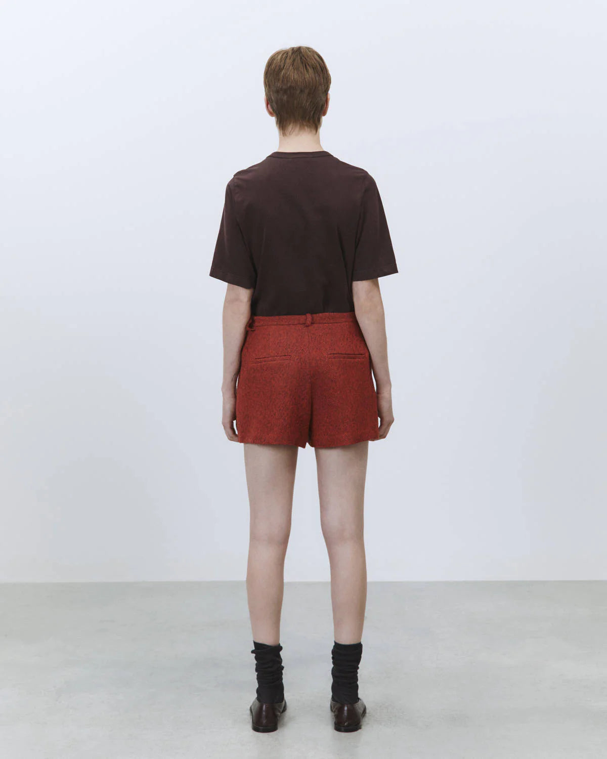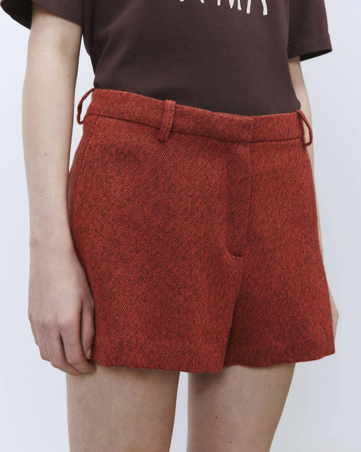 Short in 100% cachemire leggermente svasati. Vita regolare con cintolo e passanti, doppio taschino laterale a filo. Vestibilità comoda (la foto fa riferimento al modello, disponibile variante BISCOTTO).