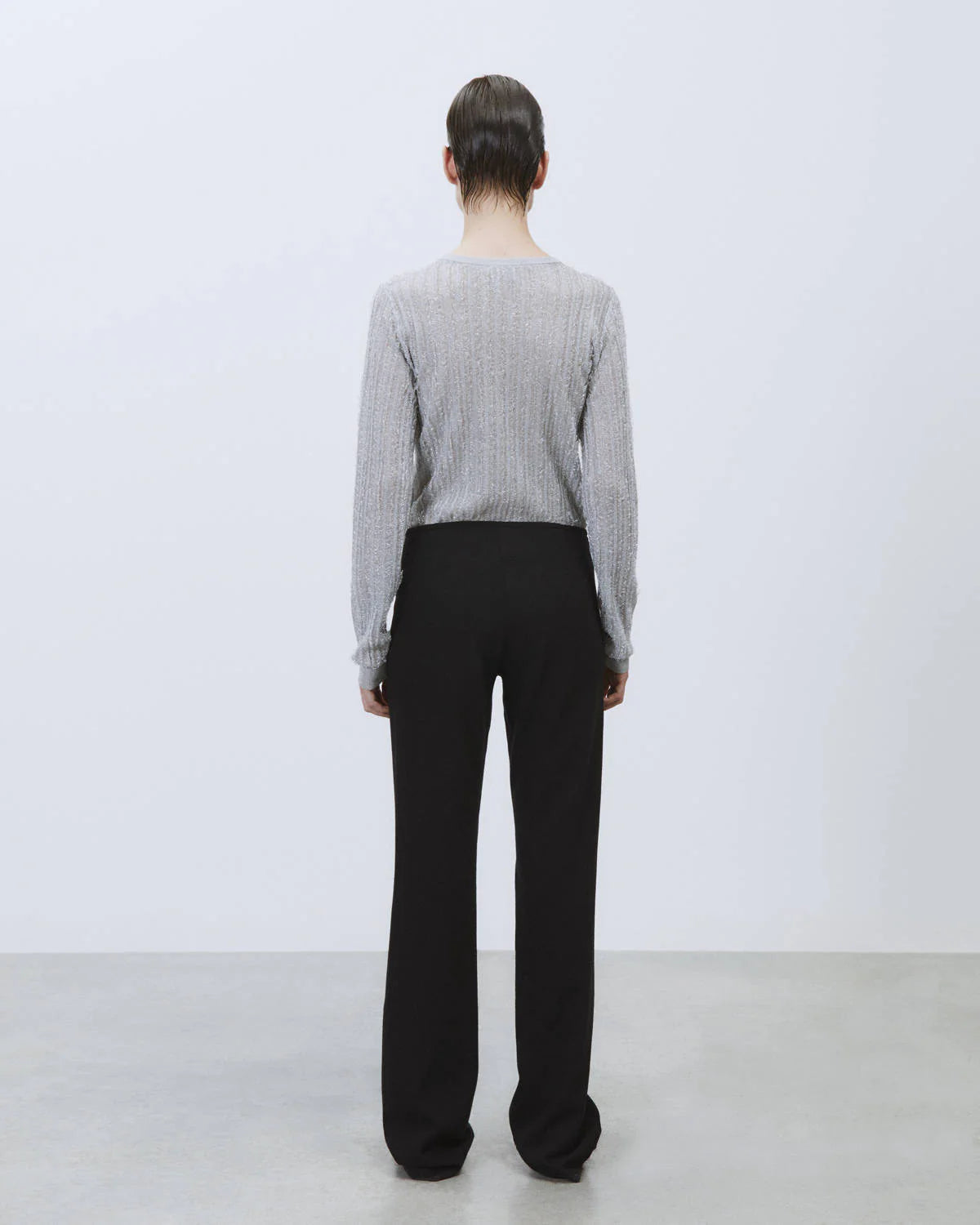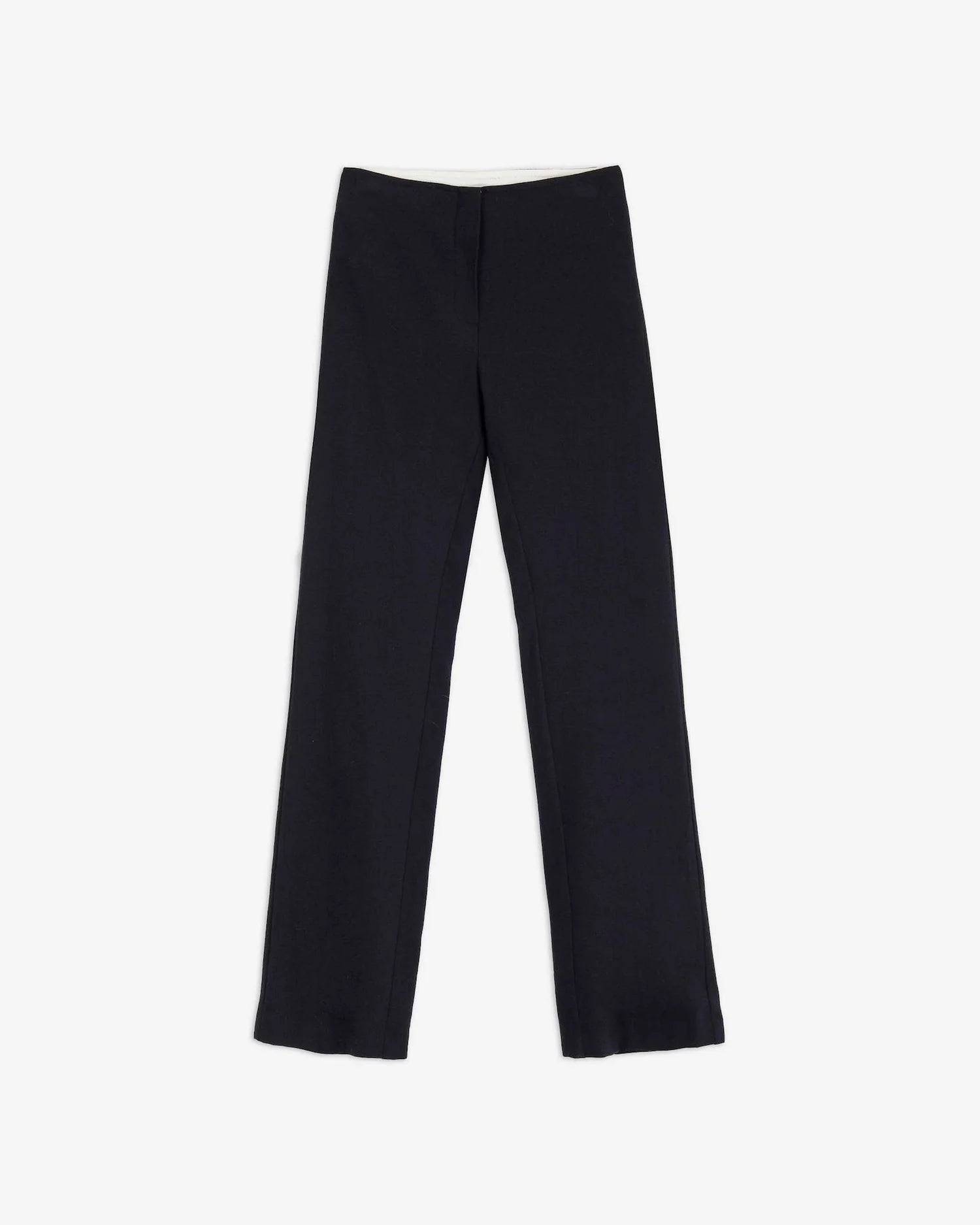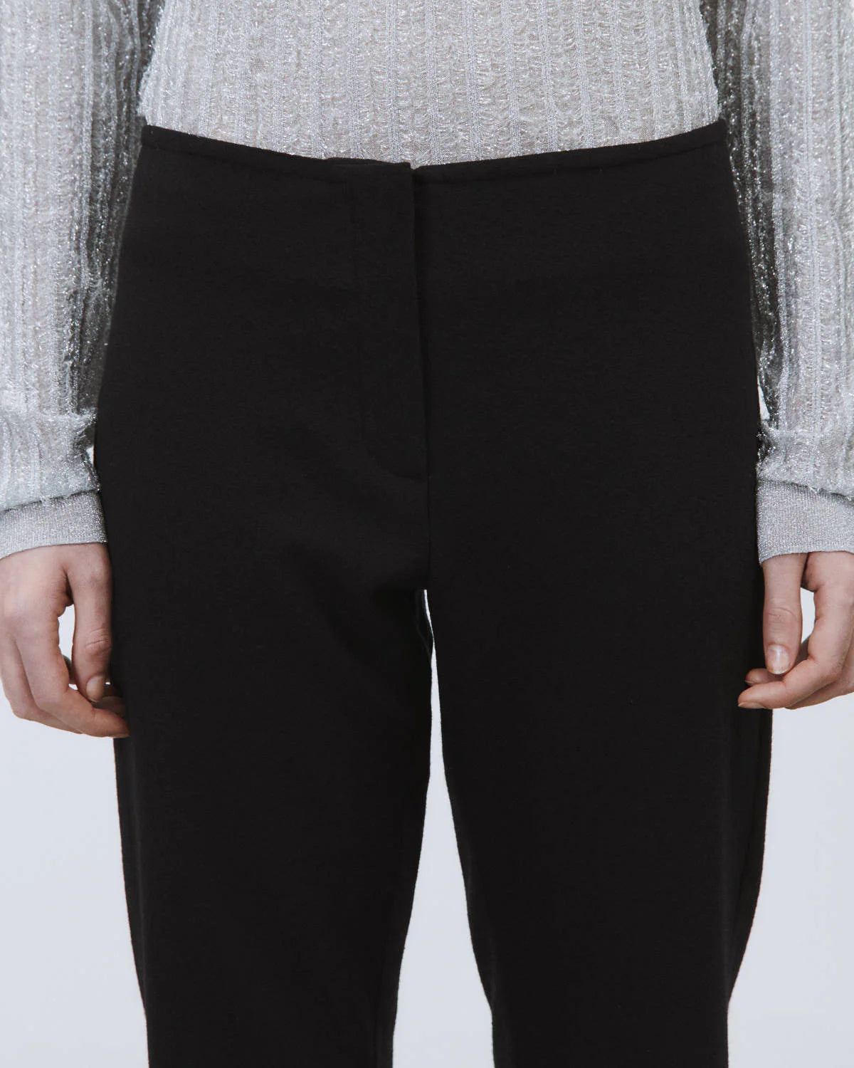 Pantalone in lana stretch dritto, leggermente svasato sul fondo. Chiusura con zip e gancetto, super pulito. Bellissimo abbinato al suo blazer senza collo.