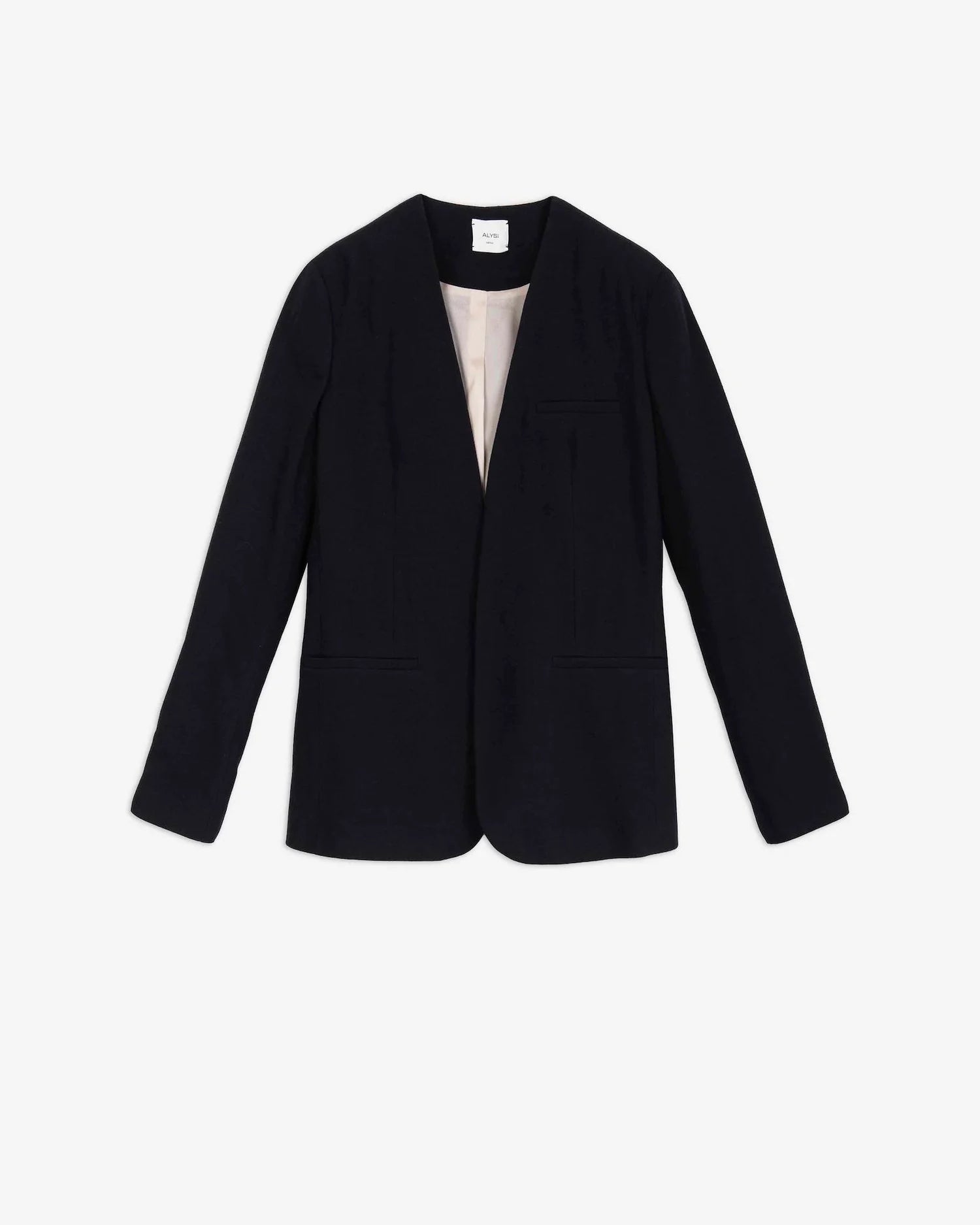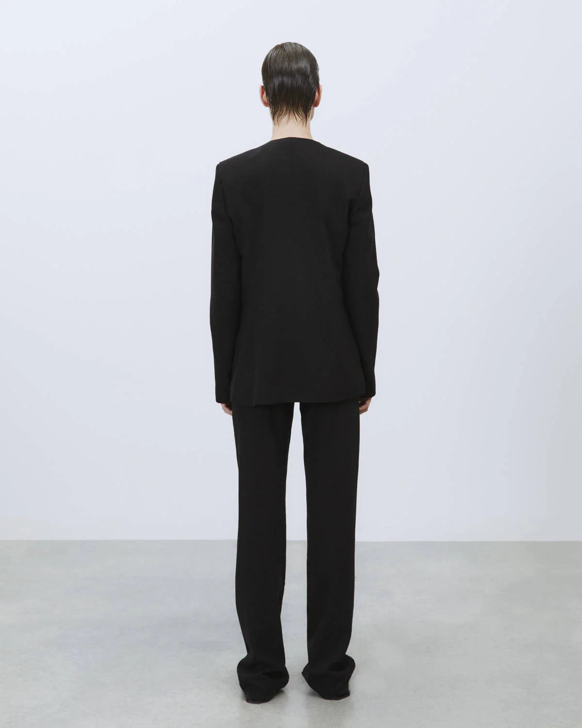 Blazer in lana stretch con V senza collo. Vestibilità dritta, chiusura senza bottoni, super comodo e chic!