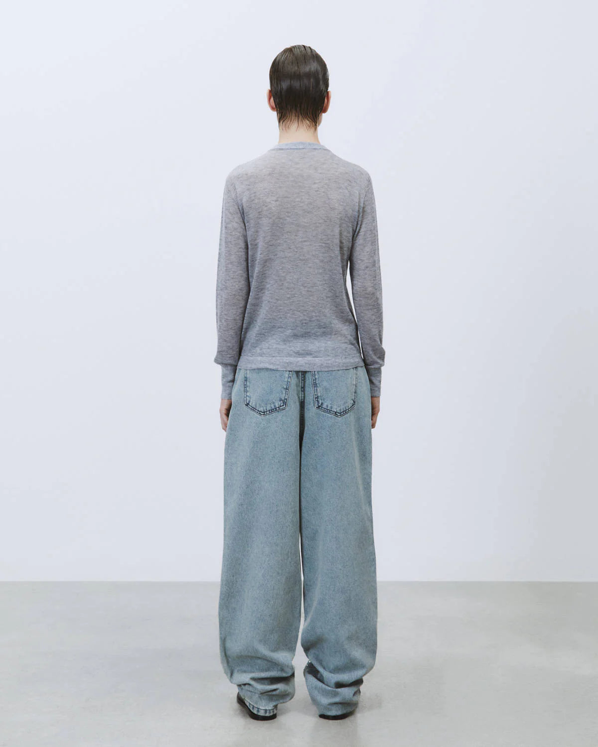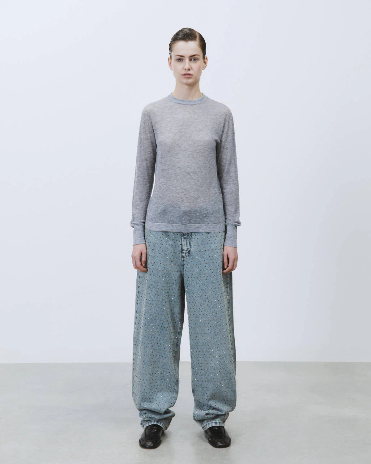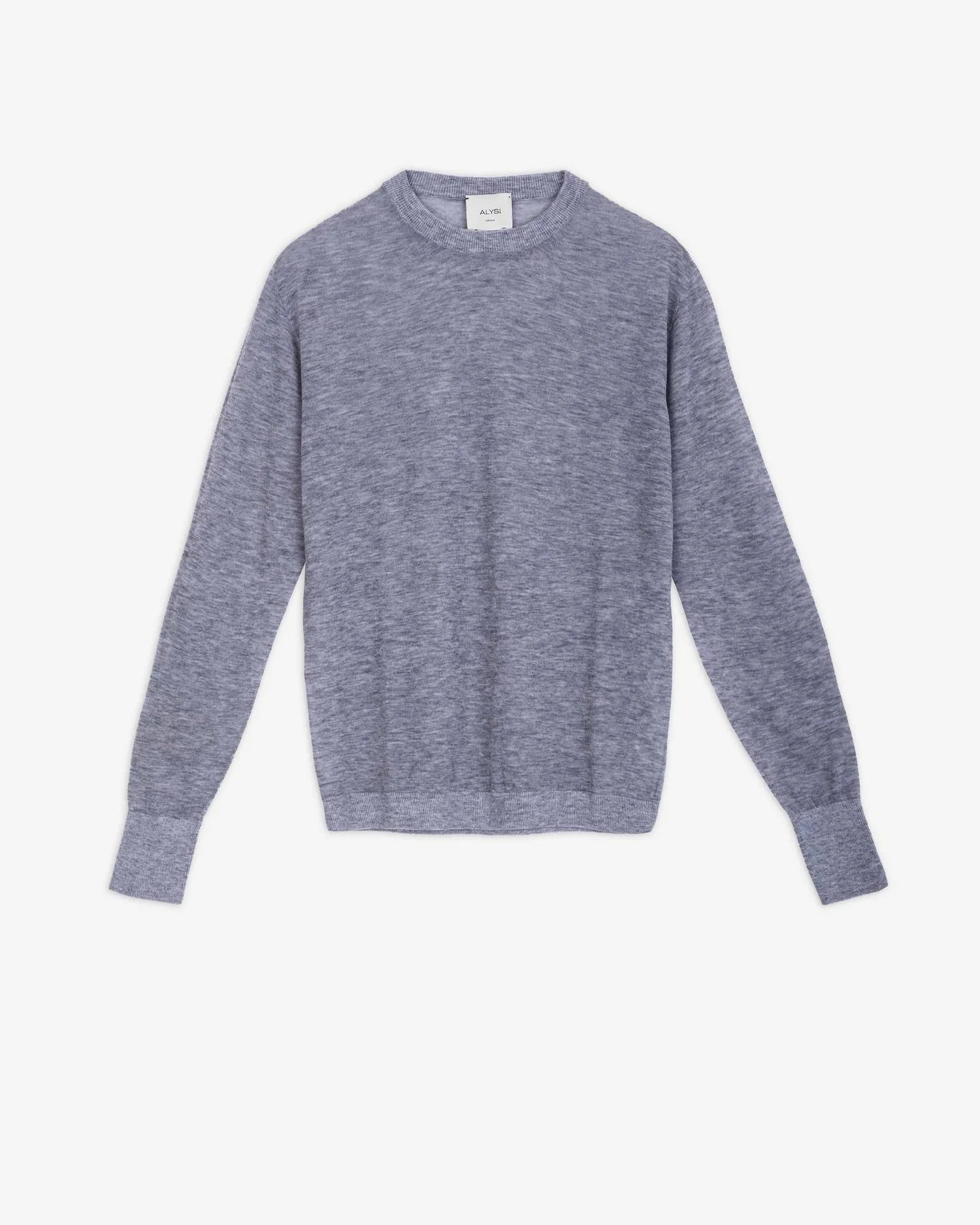 Maglia girocollo in cachemire grigio melange. Vestibilità regolare, super comoda.