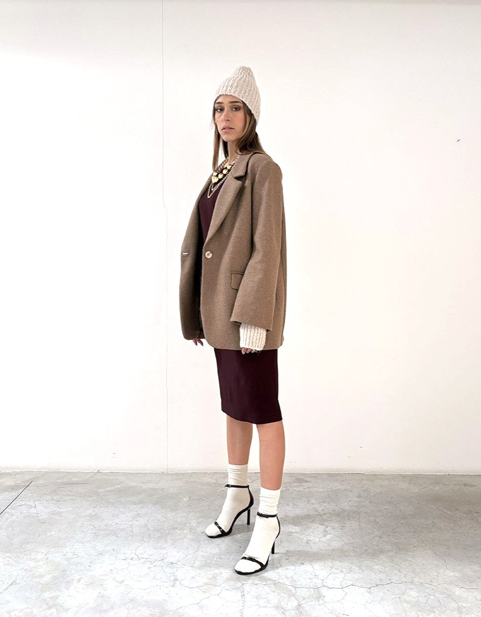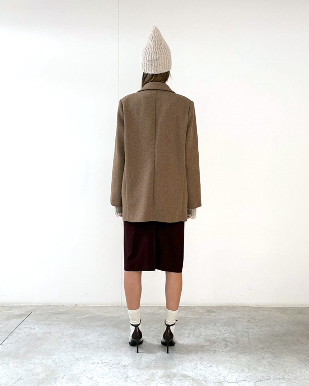 Blazer over in panno di lana monobottone a contrasto. Tasche con pattina, leggermente avvitato. Vestibilità oversize.